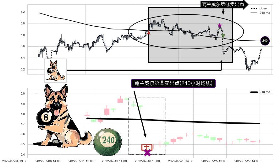 ⚁ 240小时均线 第⑧卖出点 属于 均线服从 信号,属于趋势运行的【常态】即信号期望为下降趋势的中继