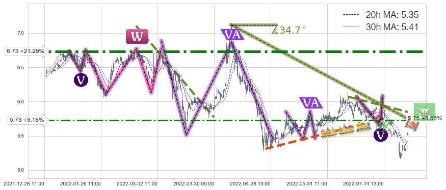 ♞ 20小时均线:5.35,30小时均线:5.41→ 快线<慢线