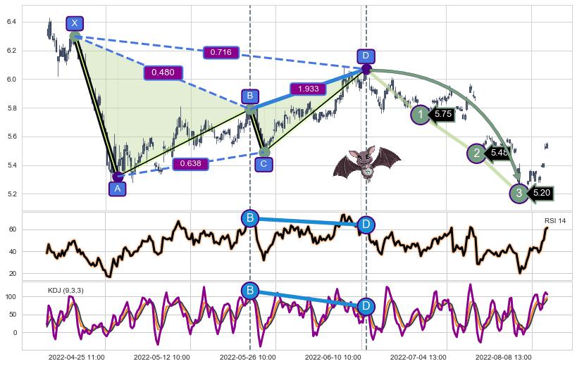 ➣ 已完成【蝙蝠】形态起点X: 04-19:15, 终点D: 06-10:14, 共172交易小时