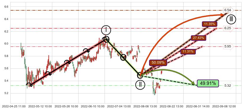 ➣ 07-15:13到达第❷价格目标位置5.48