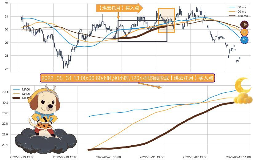 ⚀ 2022-05-20 13:00:00小时-2022-06-10 13:00:00小时显现 60小时-90小时-120小时均线 【烘云托月】买入点 看多信号,后市看涨,买入