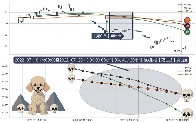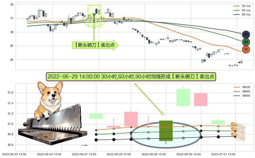 ⚀ 2022-06-29 14:00:00小时显现 30小时-60小时-90小时均线 【断头铡刀】卖出点 看空信号,后市看跌,卖出