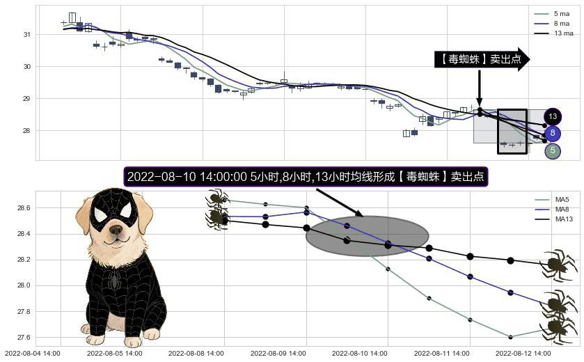 ⚀ 2022-08-10 14:00:00小时显现 5小时-8小时-13小时均线 【毒蜘蛛】卖出点 看空信号,后市看跌,卖出