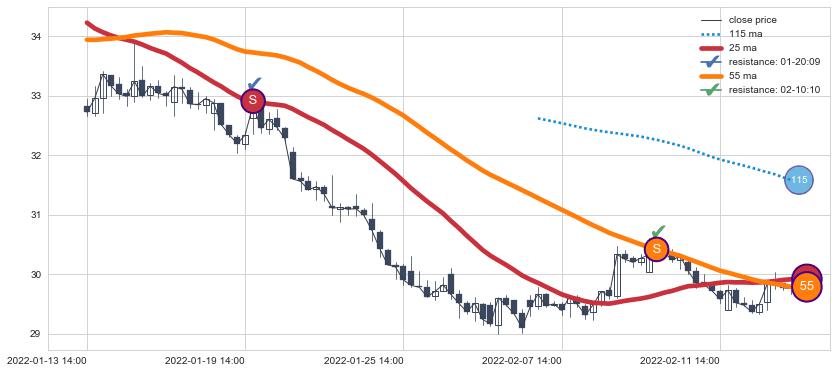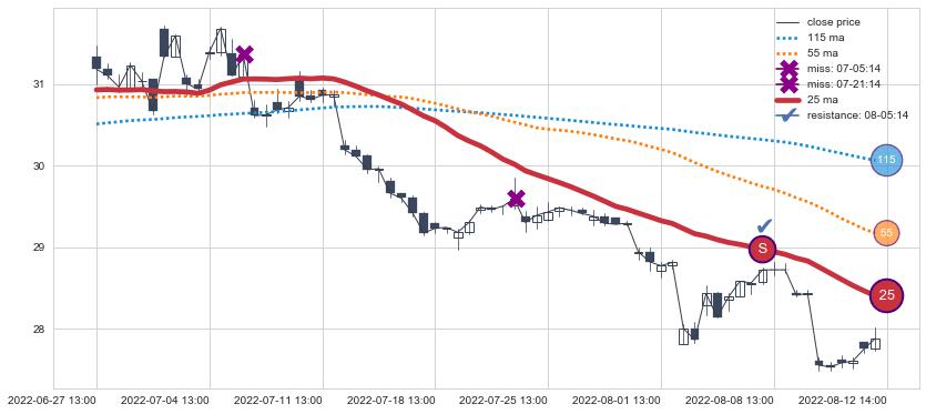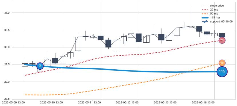 ⚃ 在破位点附近ma走势已有下垂迹象,稍后的走势中ma下降趋势明显,信号【可信度高】