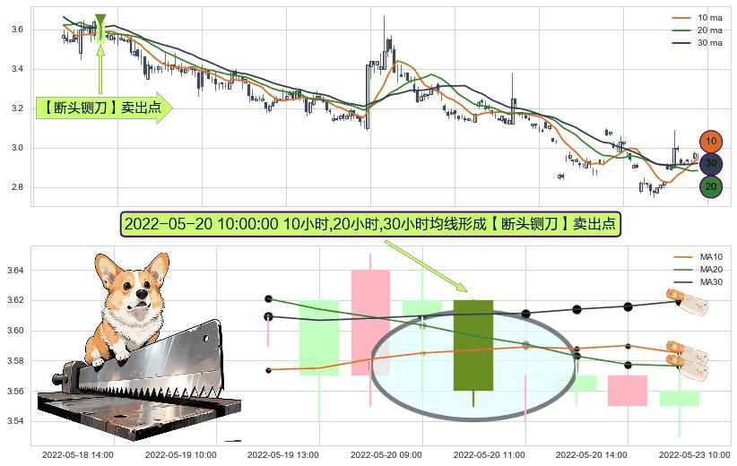 ⚀ 2022-05-20 10:00:00小时显现 10小时-20小时-30小时均线 【断头铡刀】卖出点 看空信号,后市看跌,卖出