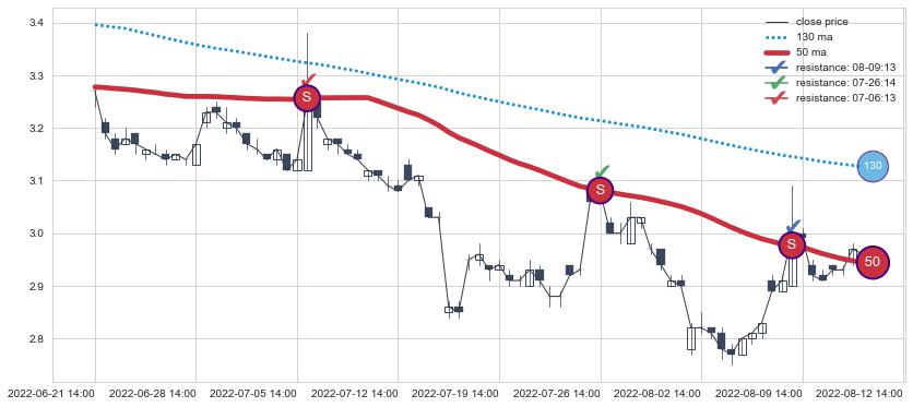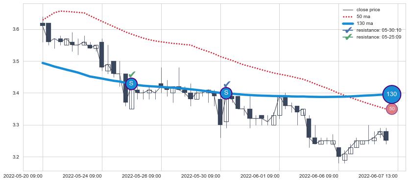 ⚂ 2022-06-14 09:00:00-小时均线向上突破,2022-06-17 09:00:00-小时重新下穿均线破位,均线阻力再次生效