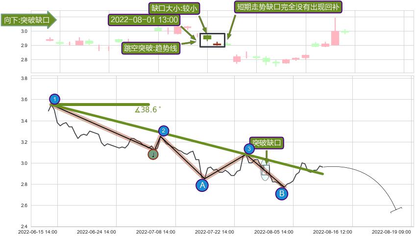 ➢ 2022-08-01 13:00形成:向下跳空【突破】缺口