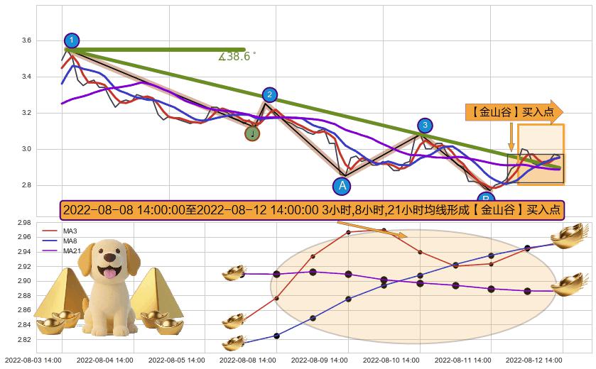 ♘ 阻力价格位3.509,可信任强度88.41%,距离最后交易2022-08-12 14:00形成的收盘价格2.960相差 +18.54%