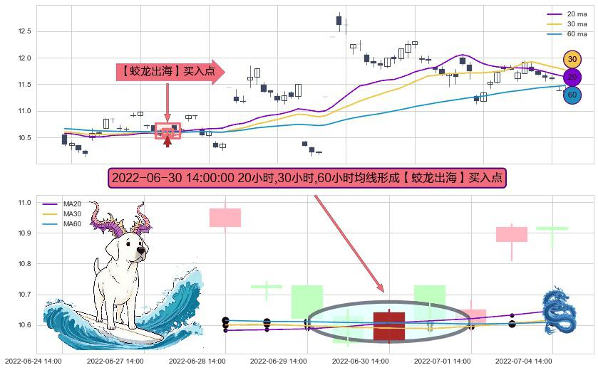 ⚀ 2022-06-30 14:00:00小时显现 20小时-30小时-60小时均线 【蛟龙出海】买入点 看多信号,后市看涨,买入