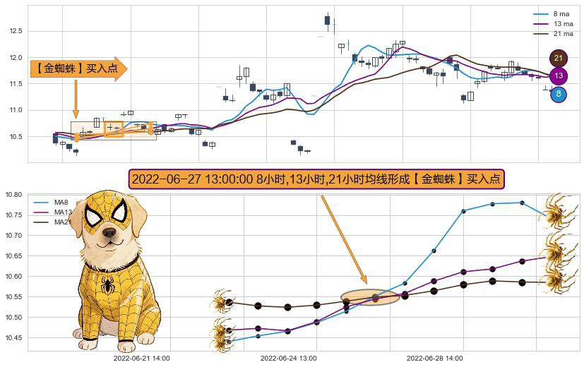 ⚀ 2022-06-27 13:00:00小时显现 8小时-13小时-21小时均线 【金蜘蛛】买入点 看多信号,后市看涨,买入