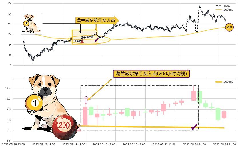 ⚀ 2022-05-18 13:00:00-小时显现 葛兰威尔均线 200小时均线 第买①入点 走势反转见底信号,后市看涨,买进信号