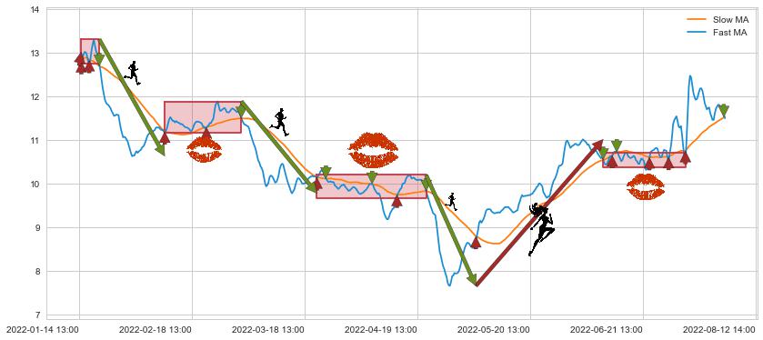 03-22 14:00至04-21 10:00 慢线与快线多次接触,存在上下穿越,有缠绕