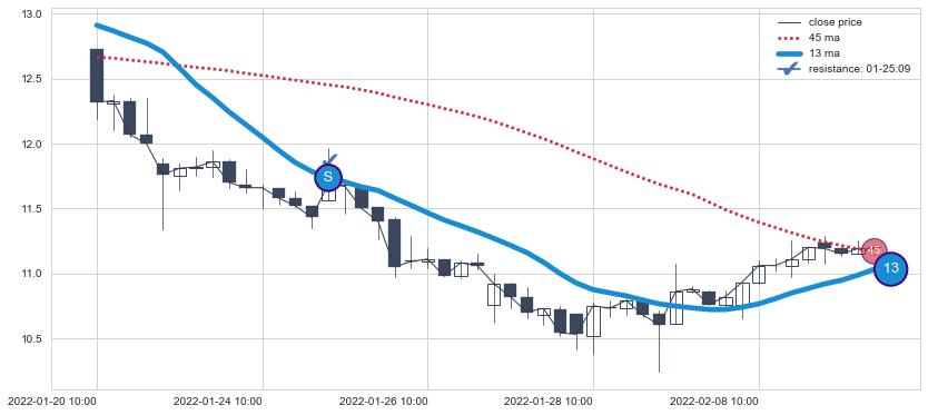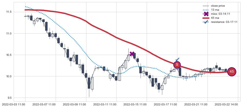 ⚂ 2022-06-22 13:00:00-小时均线向下破位,2022-07-19 13:00:00-小时重新上穿突破均线,均线支撑再次生效