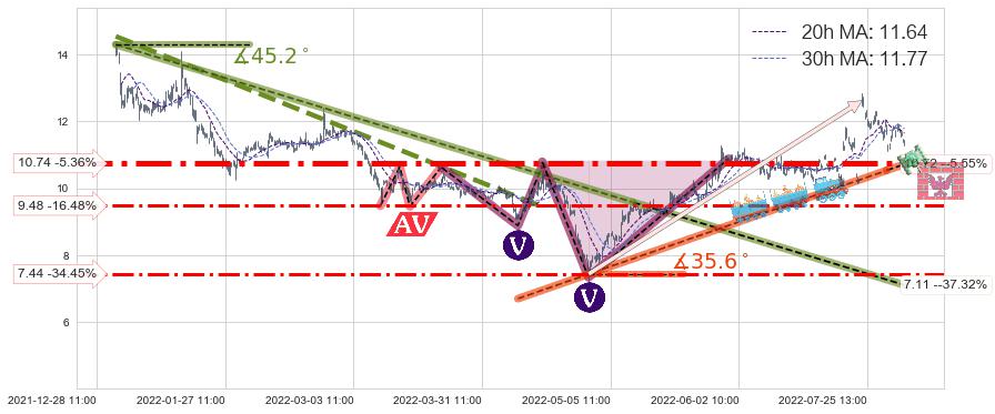 ♘ 支撑价格位7.44,可信任强度56.28%,距离最后交易2022-08-12 14:00形成的收盘价格11.35相差 -34.45%