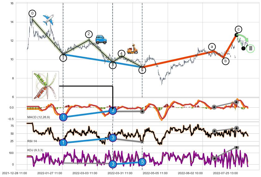 ➣ a,c调整浪MACD, RSI, KDJ走势都【未出现】背离,abc走势延续, 5浪反转概率增强
