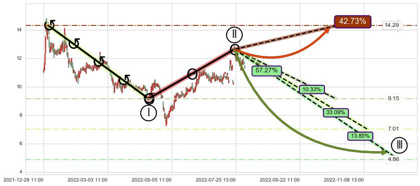 ➣ 大趋势循环浪继续向下概率57.27%