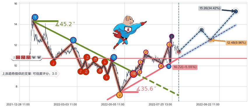 ♘ 支撑价格位10.74,可信任强度87.00%,距离最后交易2022-08-12 14:00形成的收盘价格11.35相差 -5.36%