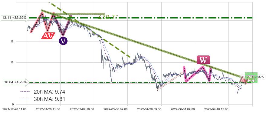 ♞ 20小时均线:9.74,30小时均线:9.81→ 快线<慢线