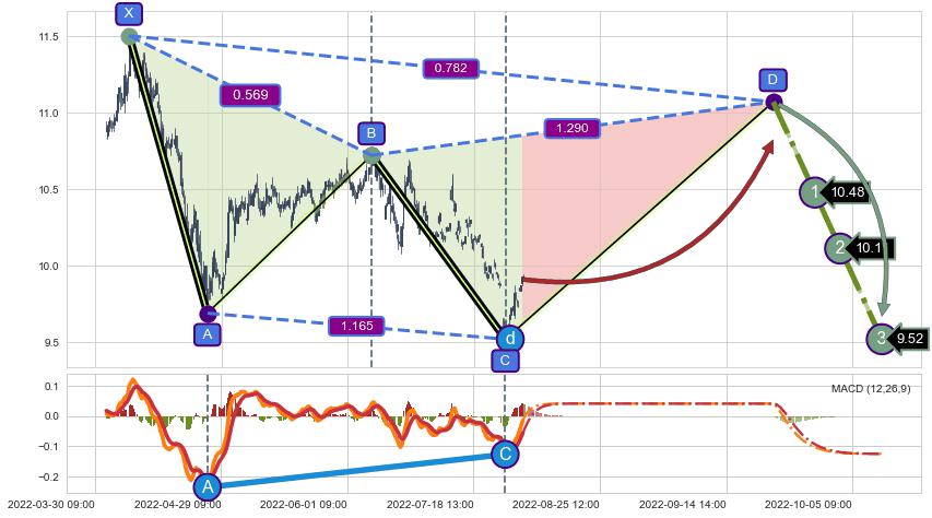 ➢ 谐波价格A点比C点高 ⤴,【MACD】指标A点比C点低 ⤵️