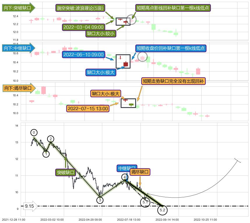 ➢ 2022-07-15 13:00形成:向下跳空【竭尽】缺口