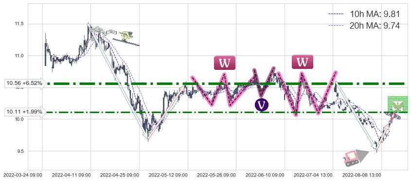 ♞ 10小时均线:9.81,20小时均线:9.74→ 快线>慢线
