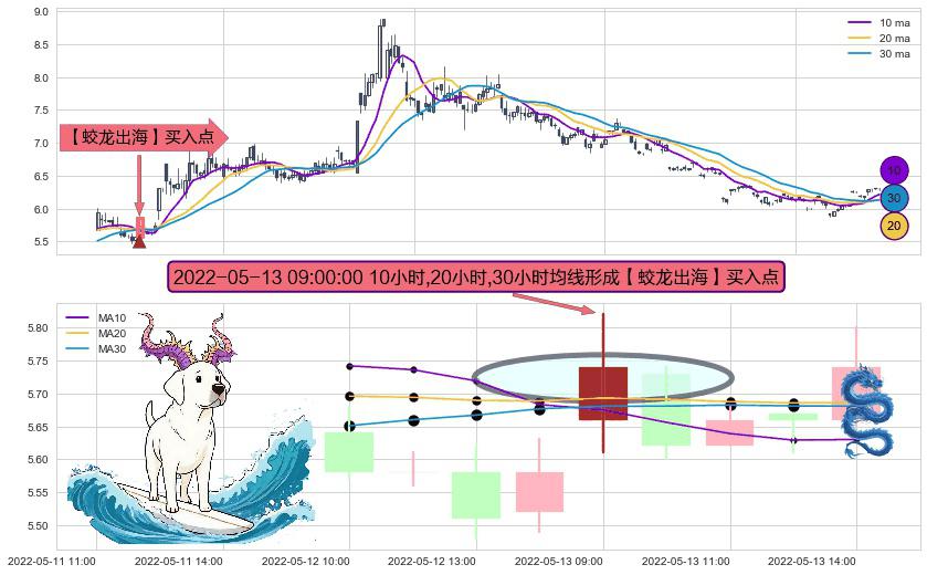 ⚀ 2022-05-13 09:00:00小时显现 10小时-20小时-30小时均线 【蛟龙出海】买入点 看多信号,后市看涨,买入