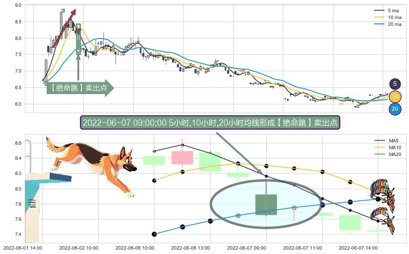 ⚀ 2022-06-07 09:00:00小时显现 5小时-10小时-20小时均线 【绝命跳】卖出点 看空信号,后市看跌,卖出