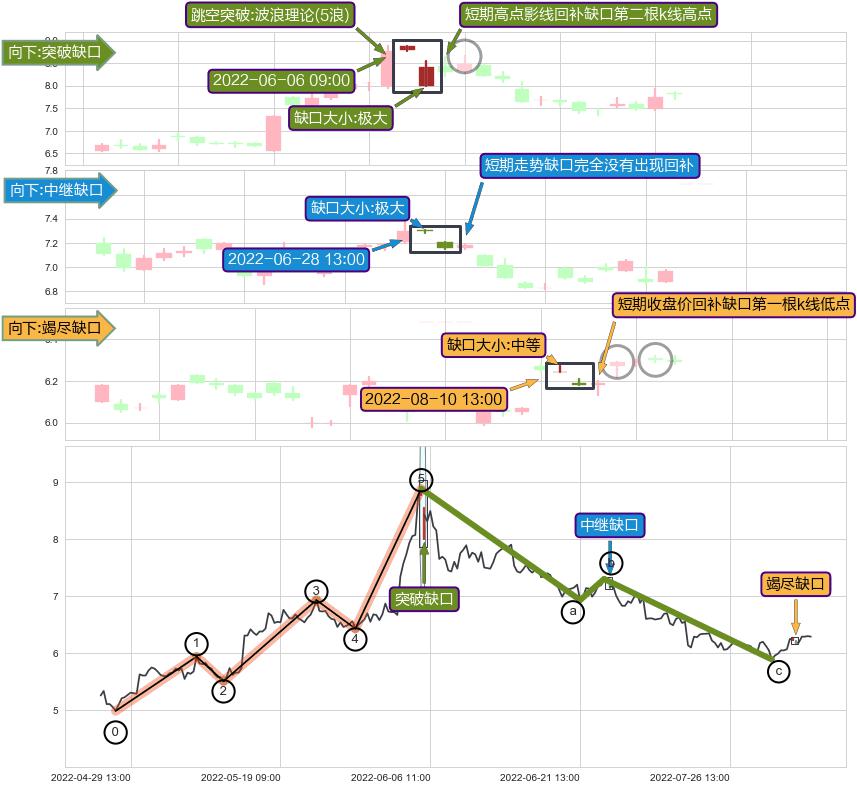 ➢ 2022-08-10 13:00形成:向下跳空【竭尽】缺口