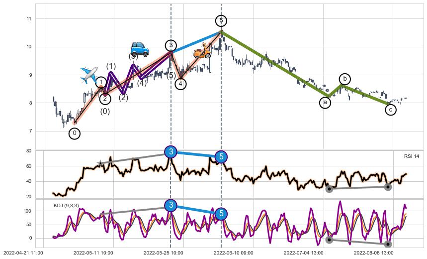 | 13 🅚:降势受阻 ➕ 🌊:波浪理论上涨5浪延续:猜想C点强支撑小回调终止,猜想保持上涨5浪方向拉升(均值回复后大周期继续趋势跟踪) ☞ 看多信号 ⇥ 【🅚线】交织【图形】⇥ 综合量化分数: 55 | > |