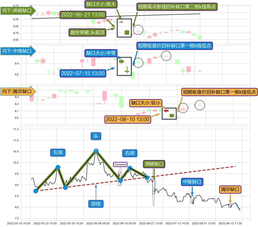 ➢ 2022-08-10 13:00形成:向下跳空【竭尽】缺口