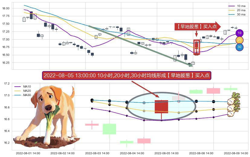⚀ 2022-08-05 13:00:00小时显现 10小时-20小时-30小时均线 【旱地拔葱】买入点 看多信号,后市看涨,买入