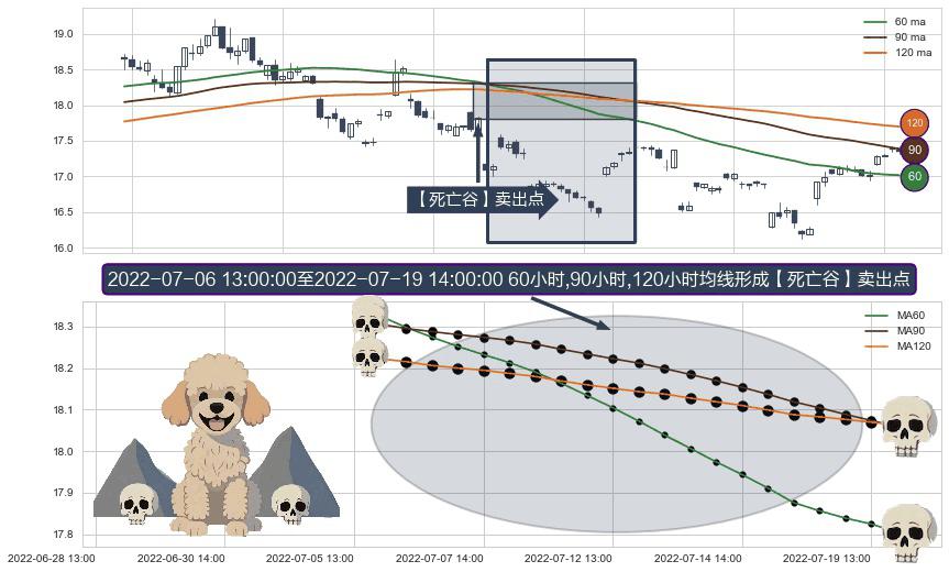 ⚀ 2022-07-06 14:00:00-小时至2022-07-19 14:00:00-小时显现 60小时-90小时-120小时均线 【死亡谷】卖出点 看空信号,后市看跌,卖出