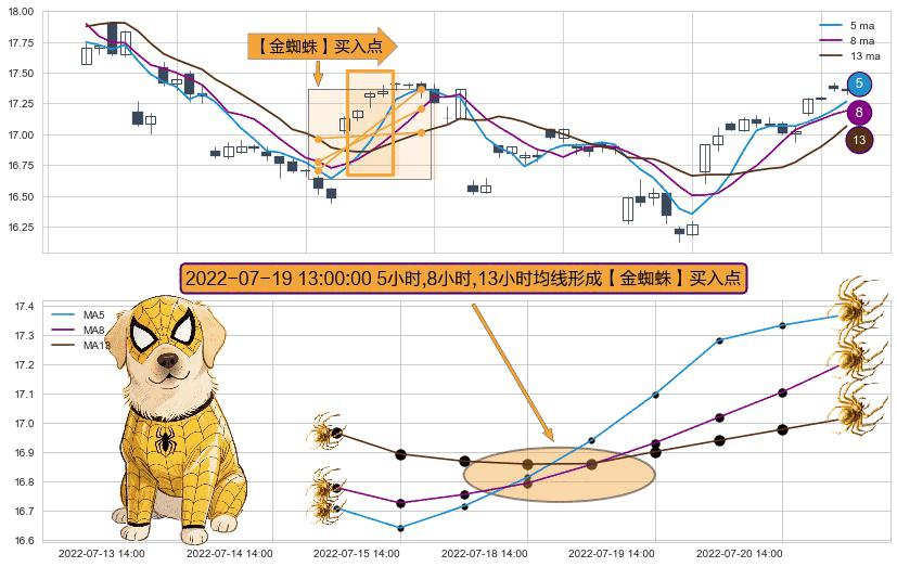 ⚀ 2022-07-19 13:00:00小时显现 5小时-8小时-13小时均线 【金蜘蛛】买入点 看多信号,后市看涨,买入