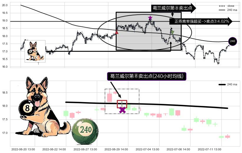 ⚀ 2022-06-29 13:00:00-小时显现 葛兰威尔均线 240小时均线 第⑧卖出点 下降趋势的中继信号,后市看跌,卖出信号