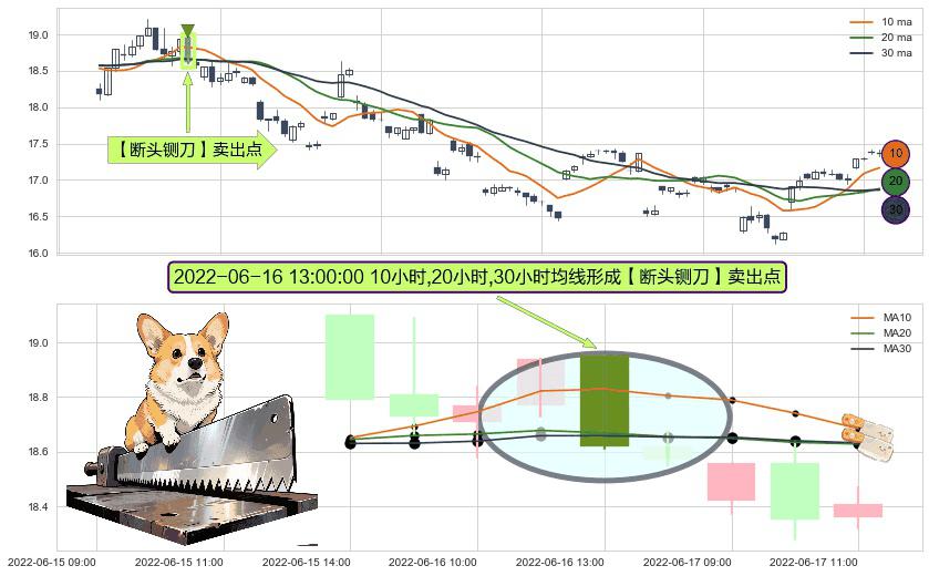 ⚀ 2022-06-16 13:00:00小时显现 10小时-20小时-30小时均线 【断头铡刀】卖出点 看空信号,后市看跌,卖出