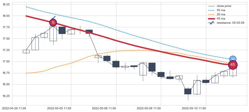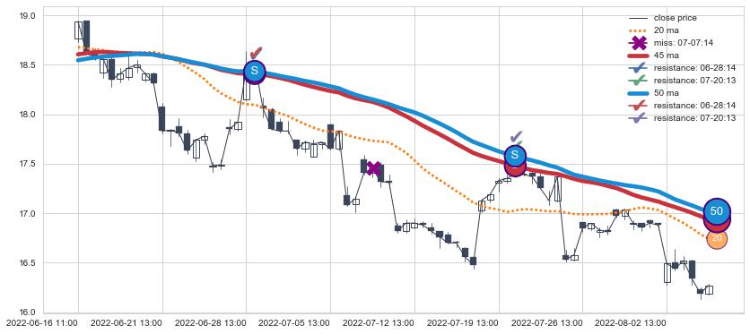 ⚄ 价格在均线遇到阻力后再次向下回落了【极短】距离, 第⑦卖出点 阻力效果【等待验证】