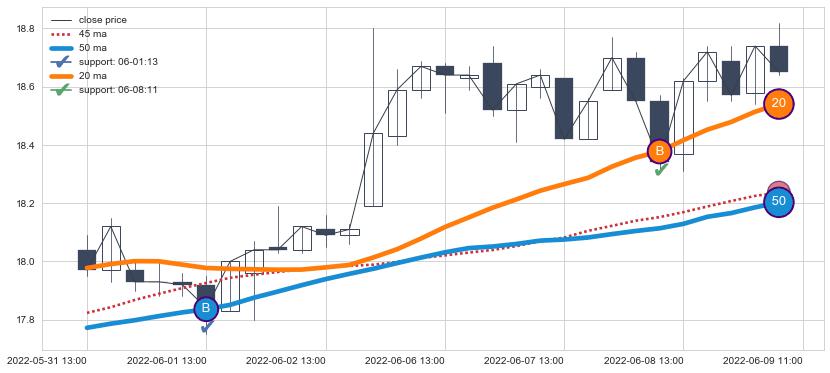 ⚂ 2022-06-16 13:00:00小时突然冒出一根大阴线,一下子下穿三条均线且收盘价收在各条均线之下