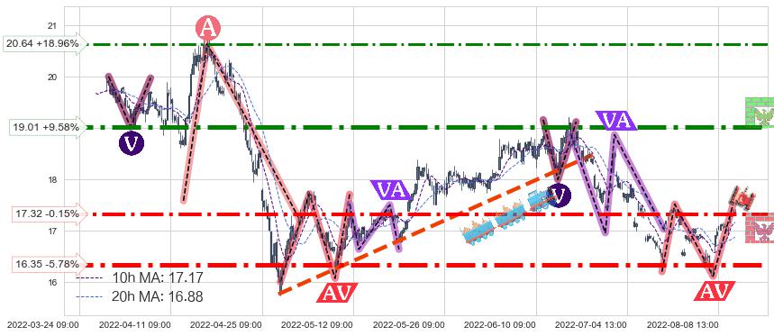 ➣ AI预测: 假定反转继续,第❷价格目标位置(08-17:12, 17.99)