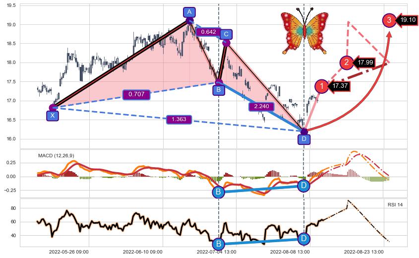 ➣ 已完成【蝴蝶】形态起点X: 05-19:09, 终点D: 08-04:13, 共172交易小时