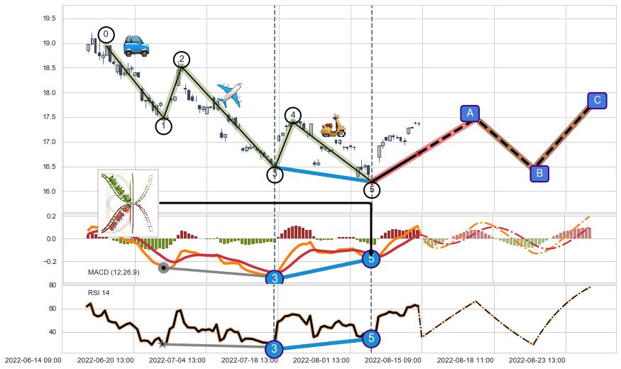 | 3 🅚:【高山滑雪】买入点 ➕ 🌊:波浪理论猜想下跌浪5已形成,猜想后续形成abc反弹上涨(均值回复) ☞ 看多信号 ⇥ 【均线】交织【图形】⇥ 综合量化分数: 52 | > |