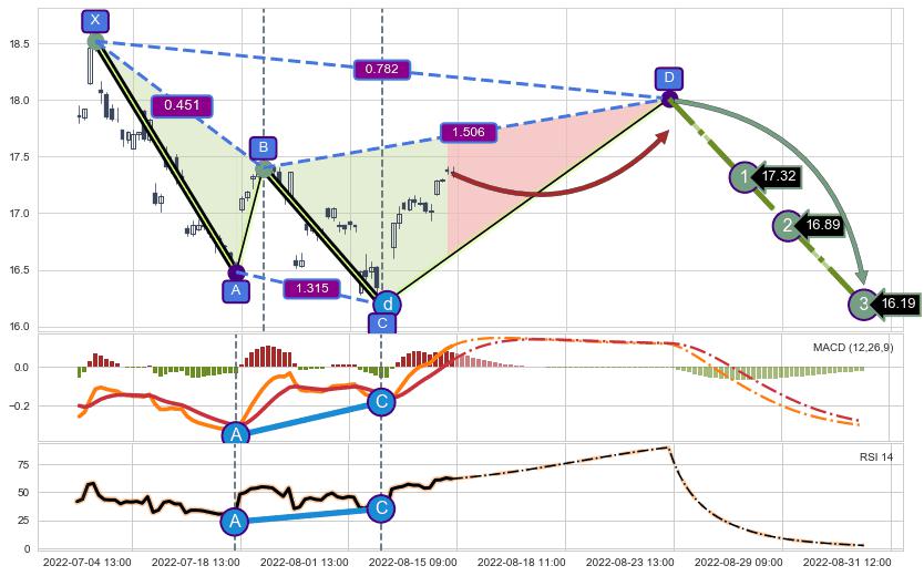➣ D点拟合预测价格18.01,距离最后交易收盘价格17.35相差 +3.82%