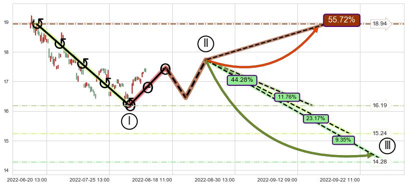 ➢ 循环浪继续向下【最高】位置(09-14:09, 16.19),匹配聚类样本比例26.56%, 可能性概率11.76%