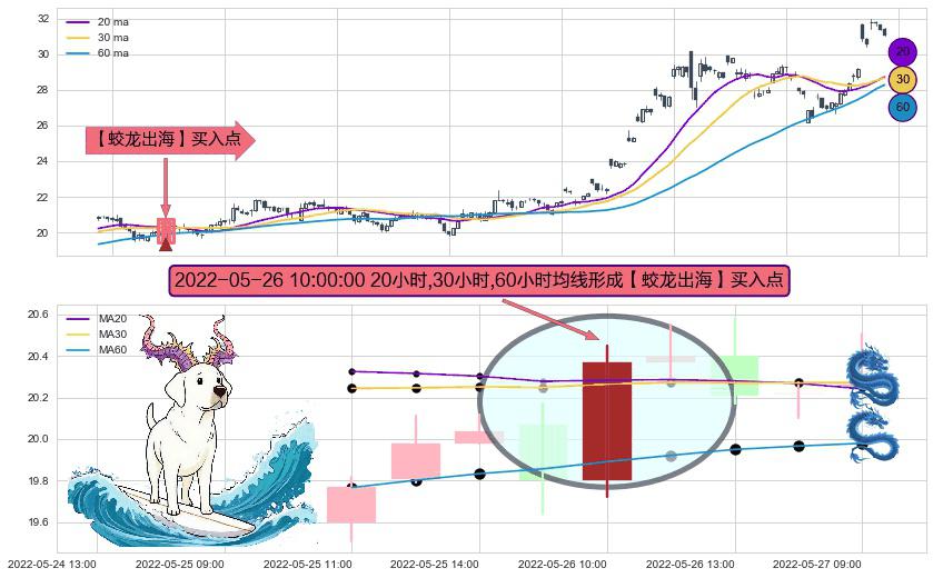 ⚀ 2022-05-26 10:00:00小时显现 20小时-30小时-60小时均线 【蛟龙出海】买入点 看多信号,后市看涨,买入