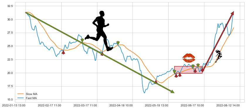 05-25 09:00至06-16 10:00 慢线与快线多次接触,存在上下穿越,有缠绕