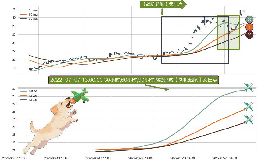 ⚀ 2022-06-16 09:00:00小时-2022-08-01 14:00:00小时显现 30小时-60小时-90小时均线 【战机起航】卖出点 看空信号,后市看跌,卖出