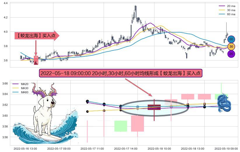 ⚀ 2022-05-18 09:00:00小时显现 20小时-30小时-60小时均线 【蛟龙出海】买入点 看多信号,后市看涨,买入