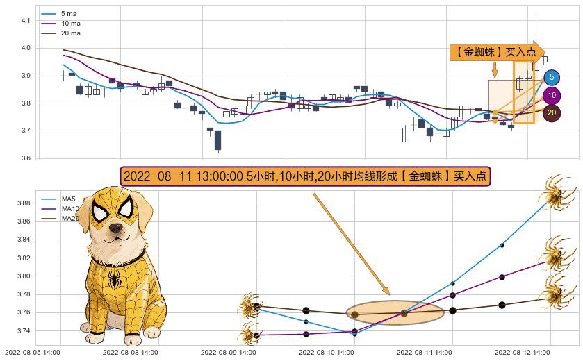 ⚀ 2022-08-11 13:00:00小时显现 5小时-10小时-20小时均线 【金蜘蛛】买入点 看多信号,后市看涨,买入