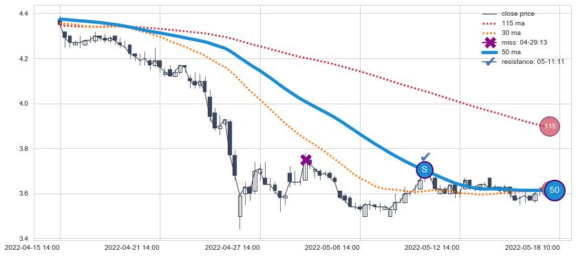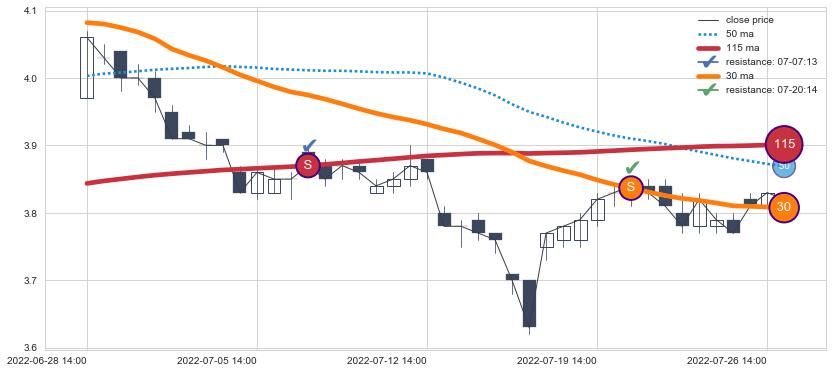 ⚂ 2022-06-29 14:00:00小时突然冒出一根大阴线,一下子下穿三条均线且收盘价收在各条均线之下
