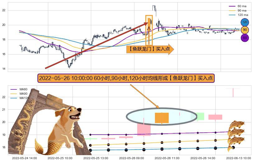 形态多维评估: ⚀ 2022-05-26 10:00:00小时显现 60小时-90小时-120小时均线 【鱼跃龙门】买入点 看多信号,后市看涨,买入