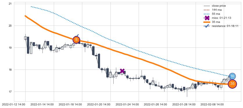 下跌趋势01-12 14:00-02-09 10:00,均线35确认关键阻力1处